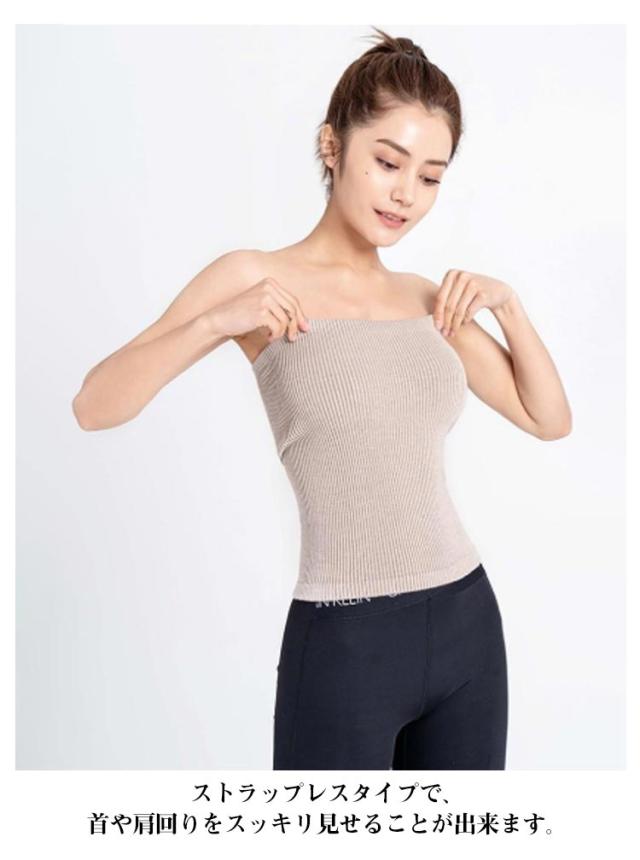 リブニット ベアトップ チューブトップ 肩ひもなし タンクトップ ストラップなし インナー 肌着 肩出し 下着 レイヤード ズレ落ち防止 フィット 無地 ストレッチ トップス ダンス ルームウエア ヨガ フィットネス スポーツ