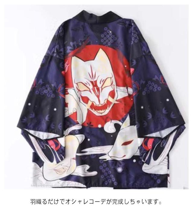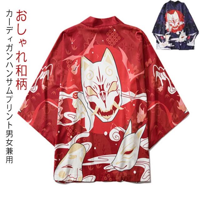 和柄 カーディガン 法被 レディース キツネ メンズ ダンス衣装 コスプレ UVカット 七分袖 甚平 コスプレ コスプレ 女性用 浴衣 和風 和風着物 夏祭り 衣装 花火大会 着物 羽織 トップス 男女兼用 薄手 春夏秋 きれいめ おしゃれ