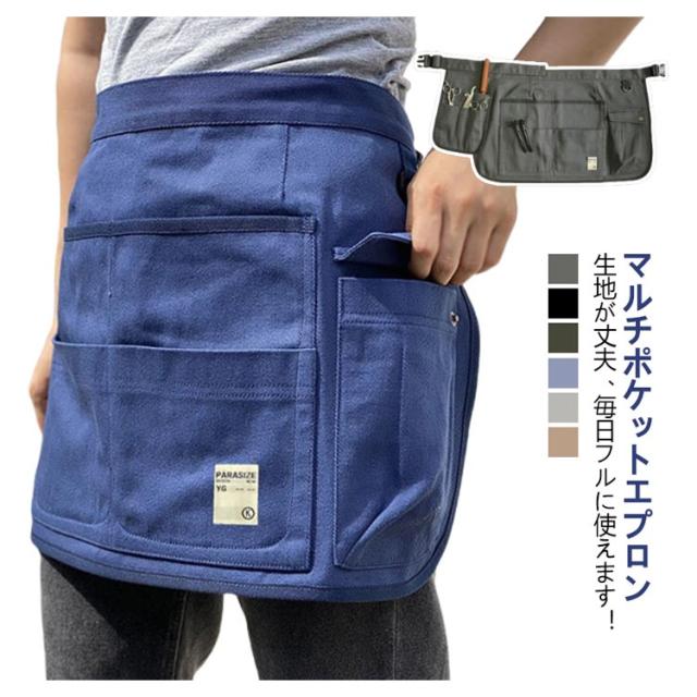 ガーデニングエプロン ショート丈 レディース メンズ エプロン 前掛け おしゃれ ナチュラル マルチポケットエプロン 作業エプロン 園芸雑貨 多機能 ショートエプロン 男女兼用サイズ バックル装着 大容量 農作業 家庭菜園 農業女子 ポケット たくさん
