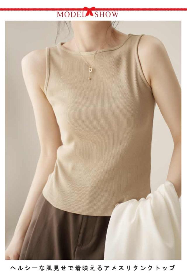 アメスリ タンクトップ レディース アメリカンスリーブ タンクトップ アメスリ タンク インナー ノースリーブ トップス リブカットソー トレンド 無地 シンプル きれいめ タイト 重ね着 着回し レイヤード 伸縮 タンク アメスリタンク ホワイト ベージュ ブラック 送料無料