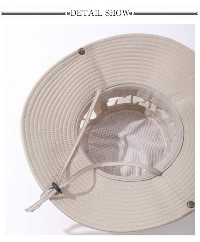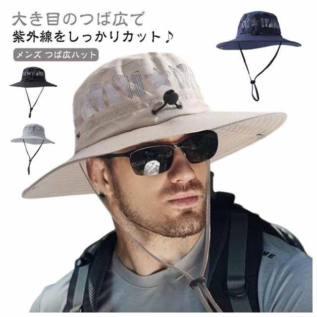 | 大き目のつば広で紫外線をしっかりカット♪メンズ つば広ハット 通気性抜群!メッシュ構造で快適な着用感。 360℃紫外線をカット、暑さから身を守り、熱中症対策に最適です。 あご紐付きで急な突風でも飛ばされる心配がありません 夏フェス、アウトドア、釣り、登山、キャンプ等に最適なハットです。軽くてコンパクトに収納も出来ます | |