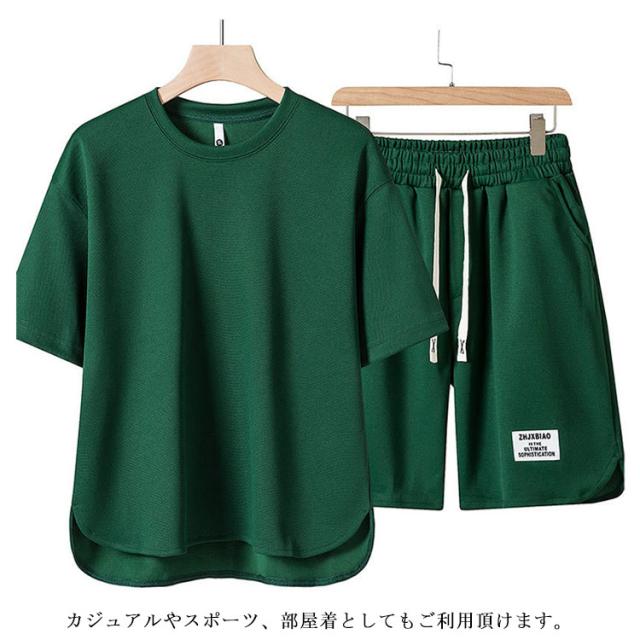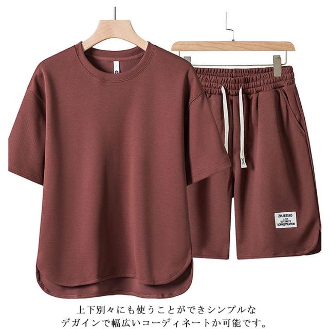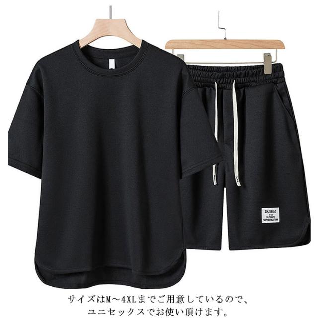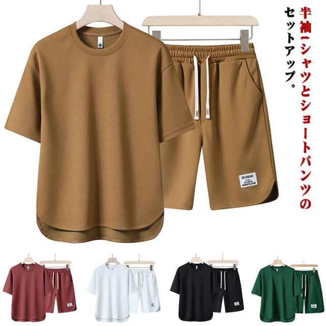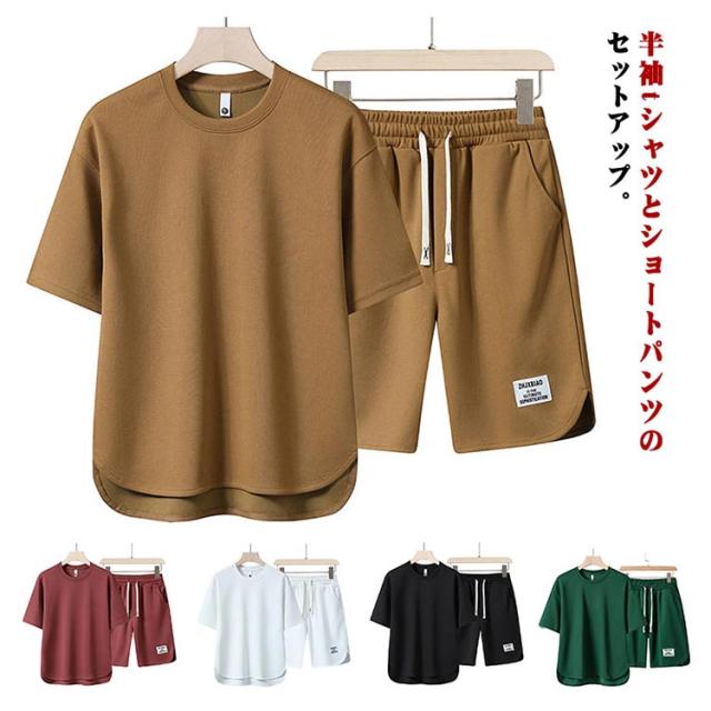 セットアップ メンズ 夏服 ジャージ 上下セット 半袖Tシャツ ショートパンツ 2点セット クルーネック tシャツ ハーフパンツ 短パン 無地 シンプル 大きいサイズ カジュアル スポーツウェア ダンス ランニング トレーニング ルームウェア 部屋着 夏 ユニセックス
