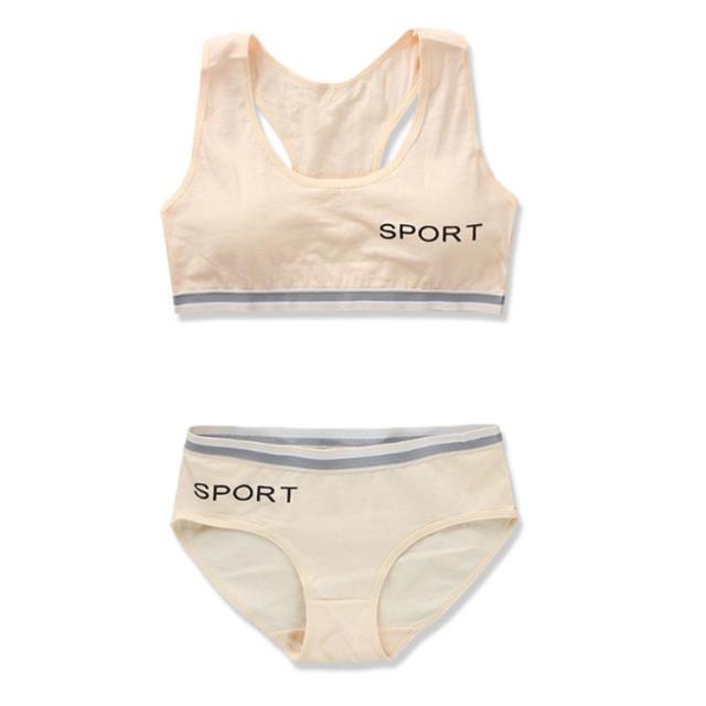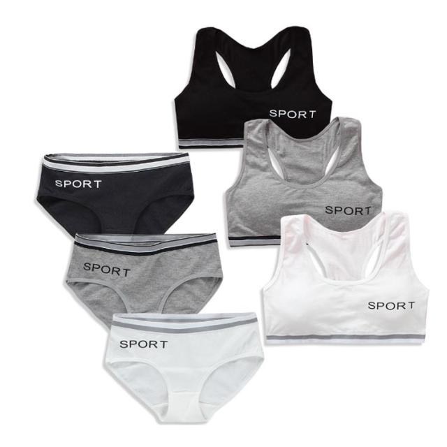 ジュニア向け 下着セット 子供 キッズ スポーツブラ ショーツ セット カップ付き 女の子 中学生 小学生 子供用下着 ブラジャー 肌着 英字ロゴ 無地 インナー アンダーウェア スポブラ ショーツ パンツ 上下セット ノンワイヤー