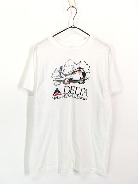 古着 80s DELTA デルタ航空 飛行機 ポップ アート Tシャツ L 古着
