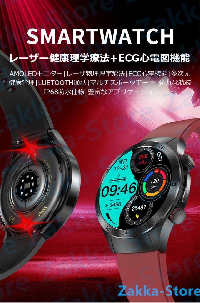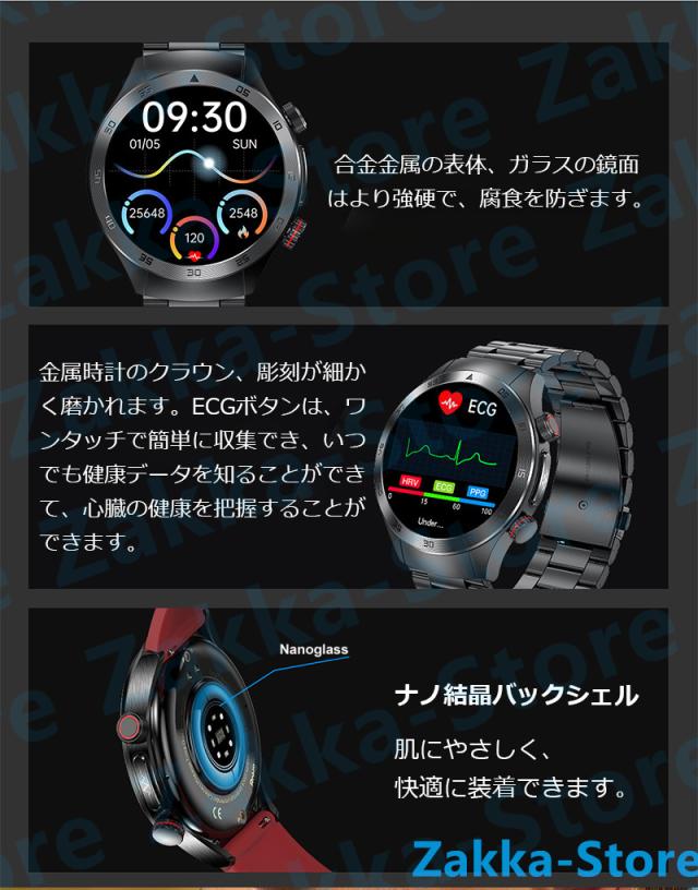 スマートウォッチE800 2024最新作AMOLEDスクリーン 日本製センサー 通話 ECG心電図 高精度心拍数 体温 血中酸素測定 IP68防水 血糖 血中酸素 血圧 脂質 SOS