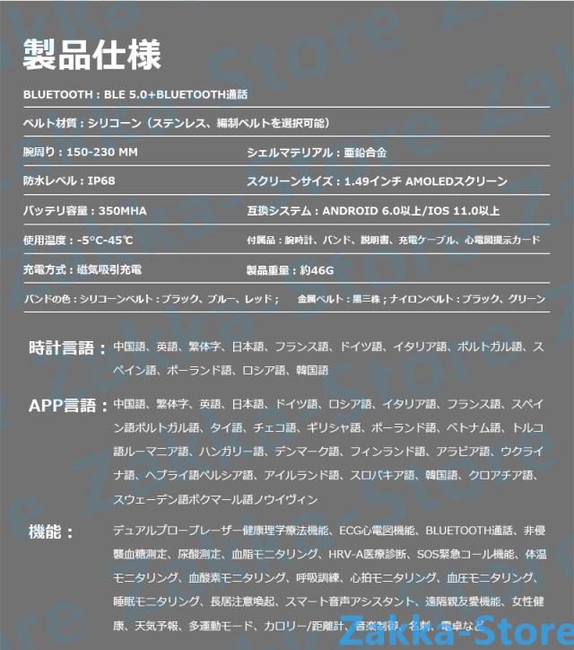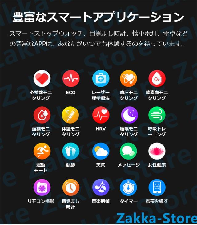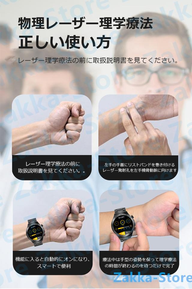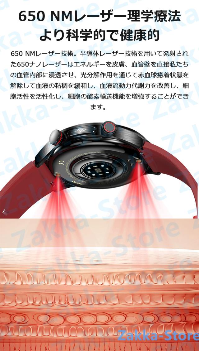 ●多機能健康管理:レーザー健康理学療法(650nm)+ECG心電図モニター、血圧測定、血中酸素、無傷血糖値測定や睡眠監視などの測定機能付き