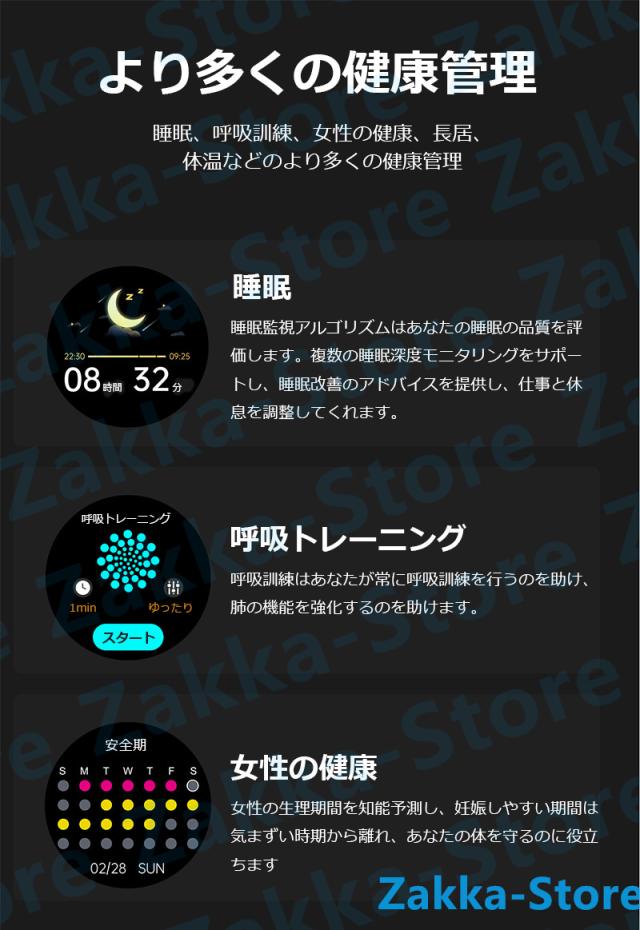 ●他にも目覚まし時計、座りがち注意などの多機能が搭載され、毎日の生活習慣の改善や日常健康管理に役立ちます