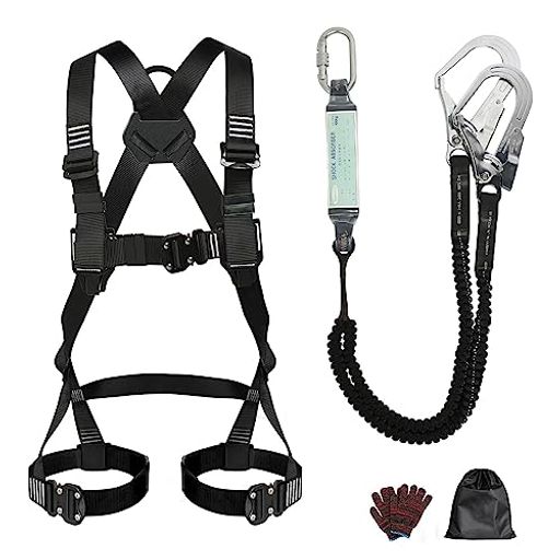 [WINFULL] 【2022新規格適合】フルハーネス安全帯 新規格 セット 墜落制止用器具 伸縮式ダブルランヤード ショックアブソーバー付き 安全落下全身保護キット ワンタッチバックル 簡単に着脱可能 建設 電力 高所作業用 日本語説明書 使用可能質量