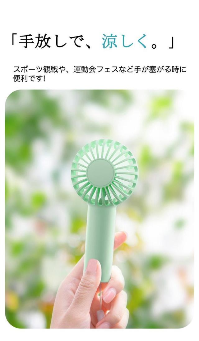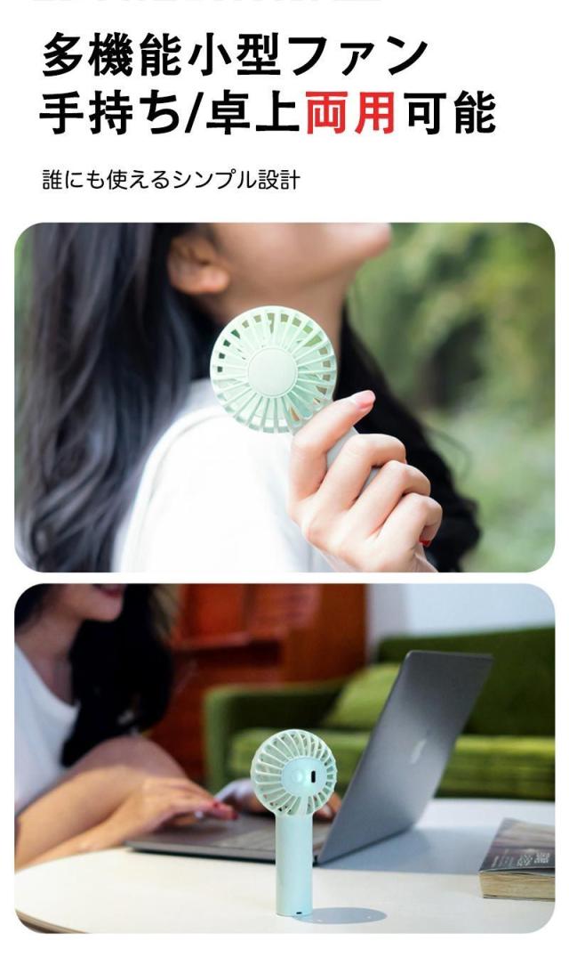 【2wayの扇風機として】手持ち扇風機・卓上扇風機との2つの機能を同時に備え、熱い夏を乗り越えるために最適の商品です。暑い日に手軽で便利なハンディファンとして蒸し暑い満員電車の中でも、ほかの迷惑をかけないように快適に使えます。工夫次第でキャンプやピクニックなど屋外でも便利に使えます。また直接USBポートからつなげばバッテリーなしで使えます。