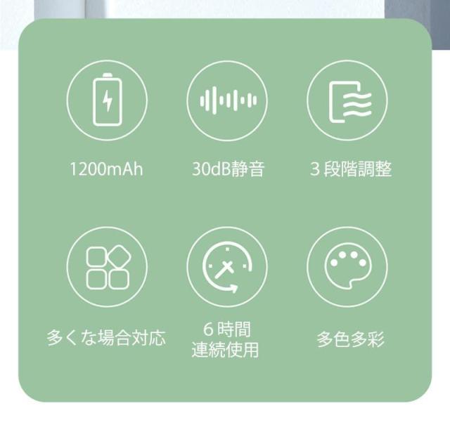 【大容量2000mAh&静音設計】2000mAh電池を搭載しており、最大3-8時間駆動を実現してくれます。お出かけ時に充電ができない場所でも安心です。繰り返し使える充電式が便利、USBケーブルが付属しており、パソコン・モバイルバッテリー等に接続をして手軽に充電ができます。高性能エンジンを採用しており、強力な風量を確保しながらも回転音が気にならない低騒音設計です。ミュート設計で仕事や勉強の時に、静かな室内環境を確保できます。