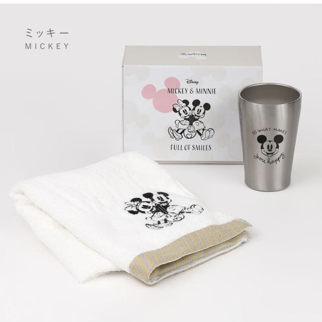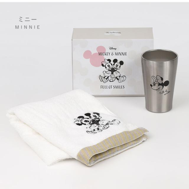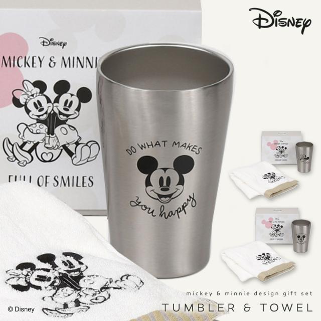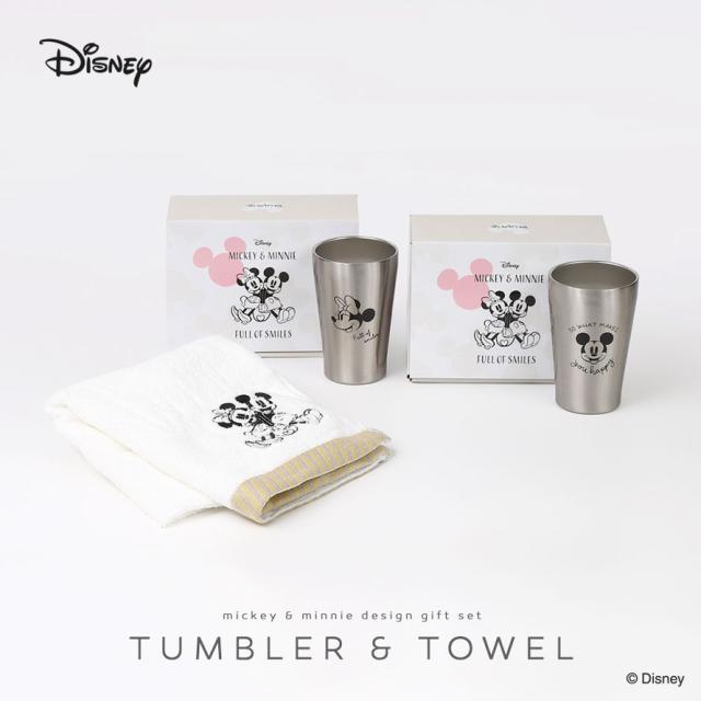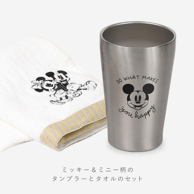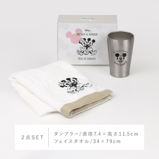ミッキー&ミニーをシンプルにデザインした大人っぽいタンブラーとフェイスタオルのセットです。シンプルで使い勝手のステンレスのタンブラーはどんな場面でも大活躍。