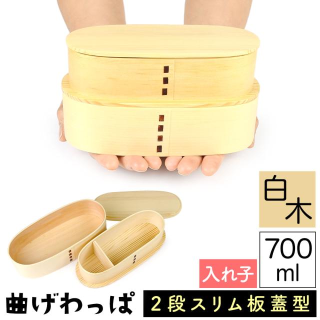 送料無料 曲げわっぱ まげわっぱ 木製弁当箱 白木 スギ 杉 弁当箱 板蓋型 入れ子型 スリム 小判型 かぶせ蓋 被せ蓋 2段 二段 700ml 男性向き 女性向き 高校生 大学生 中学生 ベルト付き 仕切り板付き ウレタンコーティング 油物OK 中性洗剤OK 丸型 楕円型 お櫃