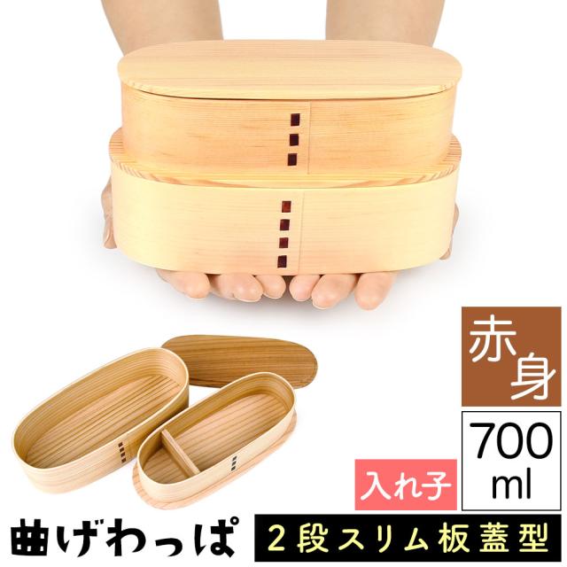 送料無料 曲げわっぱ まげわっぱ 木製弁当箱 赤身 スギ 杉 弁当箱 板蓋型 入れ子型 スリム 小判型 かぶせ蓋 被せ蓋 2段 二段 700ml 男性向き 女性向き 高校生 大学生 中学生 ベルト付き 仕切り板付き ウレタンコーティング 油物OK 中性洗剤OK 丸型 楕円型 お櫃