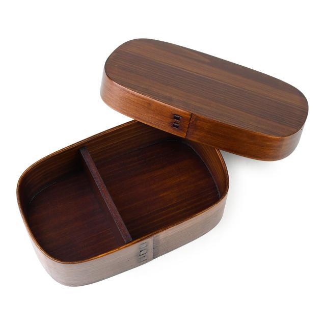 保湿効果のある赤身スギを使用しております。天然素材である漆を繰り返しコーティングすることで耐久性を高めておりますので、油物や中性洗剤を使用することも可能となっております。また漆には抗菌作用があるため、お弁当箱など食品を入れる容器にはぴったりです。色も濃いため、傷や汚れが目立ちにくく、永くご愛用いただけます。