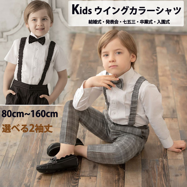 シャツ トップス 子供 男の子 ワイシャツ ウイングカラーシャツ キッズ フォーマル タキシード 無地 白 半袖 長袖 綿 80 100 120 150 160王子様 貴族 イベント 文化祭 演奏会 撮影用 ステージ衣装 白