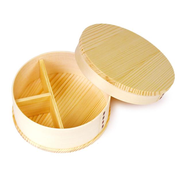 まん丸のお櫃型の丸型×かぶせ蓋の木製のお弁当箱になります。容量は550mlとやや控えめになっておりますので、女性の方や少食の方、お子様にもぴったりなサイズ感になっております。ミニサイズのお櫃がわりにご使用いただくことも可能です。T字の仕切りがついており、取り外しができますので、衛生的にお使いいただけます。