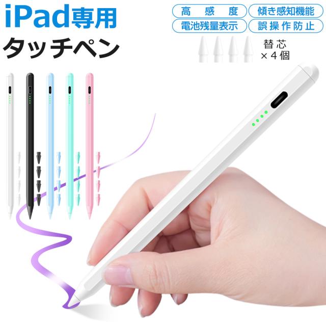 【交換ペン先4個付】iPad タッチペン スタイラスペン 残量表示 iPad A16 ペンシル iPad Air iPad Pro デジタルペン 傾き感知 極細 パームリジェクション 誤動作防止 磁気吸着 Type-C急速充電 超高感度 M5 M4 M3 M2 第10/9/8世代 10.2/10.9 /11/12.9/13インチ PSE認証済 送料無料