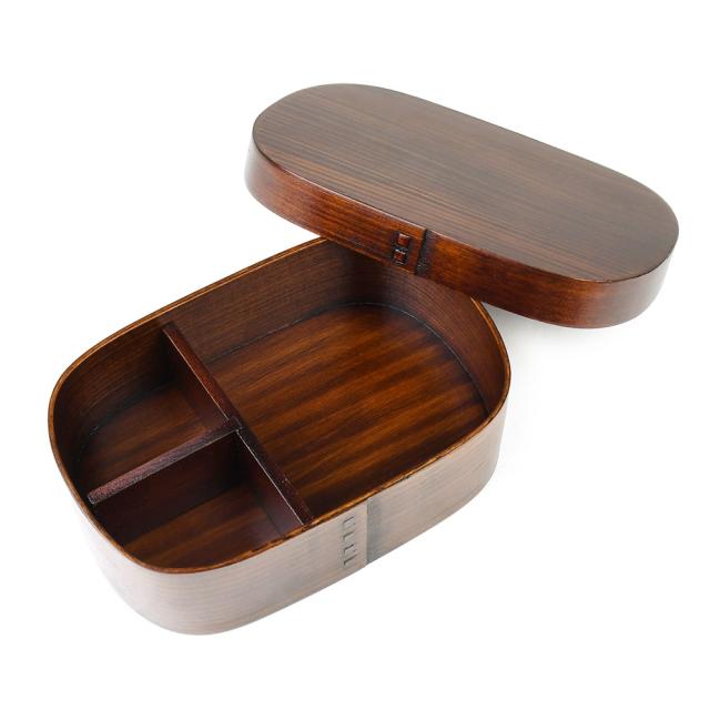 保湿効果のある赤身スギを使用しております。天然素材である漆を繰り返しコーティングすることで耐久性を高めておりますので、油物や中性洗剤を使用することも可能となっております。また漆には抗菌作用があるため、お弁当箱など食品を入れる容器にはぴったりです。色も濃いため、傷や汚れが目立ちにくく、永くご愛用いただけます。