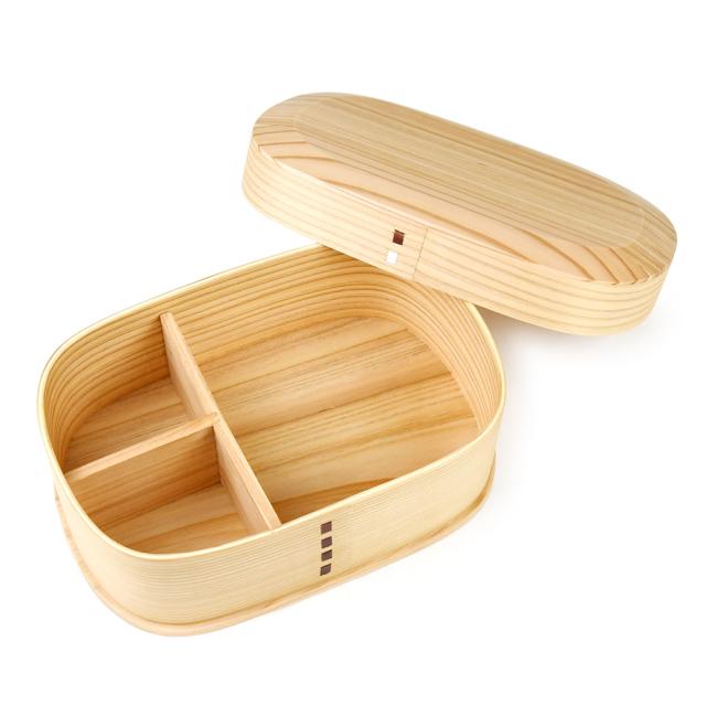 木の温もりと香りを感じる木製お弁当箱、曲げわっぱ。スギを使用した曲げわっぱは保湿機能があるため、お弁当に入れたご飯も硬くなりにくく、冷めた状態でも美味しくいただけます。
