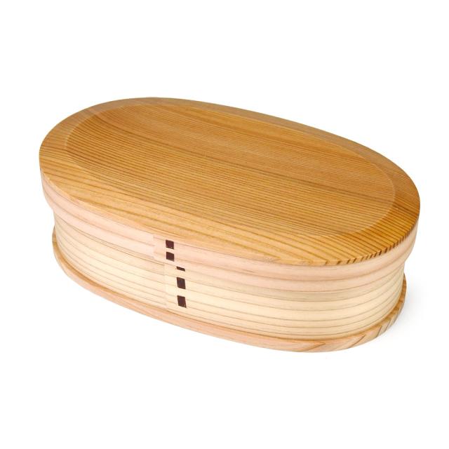 木の香りと温かみが伝わる!保湿機能を持つ木製弁当箱曲げわっぱ!程よい大きさで汎用性の高い650mlのシンプルな1段かぶせ蓋新小判型(中)弁当箱!