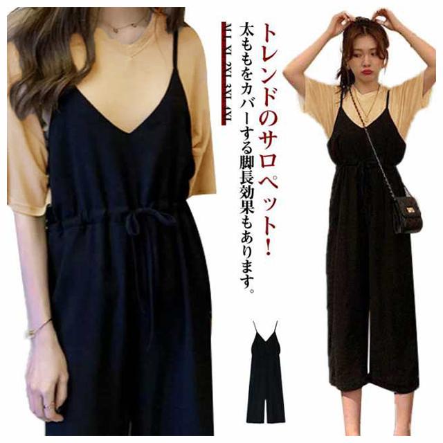 サロペット パンツ レディース オーバーオール オールインワン 春夏 夏 つなぎ vネック 着痩せ ワイドパンツ キャミソール カジュアル 大人 可愛い おしゃれ ゆったり ナチュラル シンプル 無地 体型カバー 黒