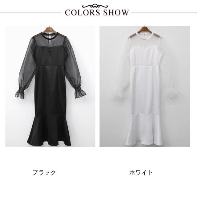 ドレス マーメード お呼ばれ マーメイド 演奏会 透け感 夏 ワンピース ロングワンピース 韓国 春 パーティードレス 秋 可愛い 同窓会 二次会 披露会 結婚式 シースルースリーブ 成人式 卒業式 謝恩会 きれいめ ブラック