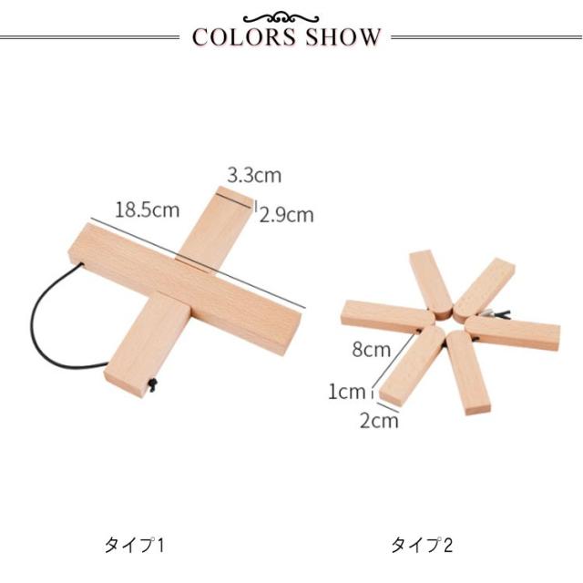 | 実用性とデザイン性を重視した木製の鍋敷き 2タイプ選べる 厚みがあり耐熱性に優れた天然木の鍋敷き 環境にも優しい天然素材で安心・安全 折りたたみ式だから場所を取らずに収納 コンパクトになり手軽に携帯できるのでキャンプやBBQなどアウトドアにも最適! 天然素材なので、どんなインテリアにもオシャレに馴染みます。 使用時は凹みに合わせるだけ。使い終わったら壁に掛けておくだけでオシャレに。 | |