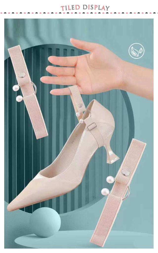 | パンプスの脱げが防止!靴を魅力的にしましょう! 引掛け金具を使用しているため脱着が簡単に出来ます。 伸縮性の良い素材を使用しており、太い足でも使用可能です。 真珠の装飾があしらわれており、足元のアクセントとしても可愛いです。 ベルト部分は調節可能なので、ご自身の足や靴によってサイズ調整が可能です。 上品なシンプルデザインはいろんなコーデになじみやすく、幅広い場合で活躍できる。 | |