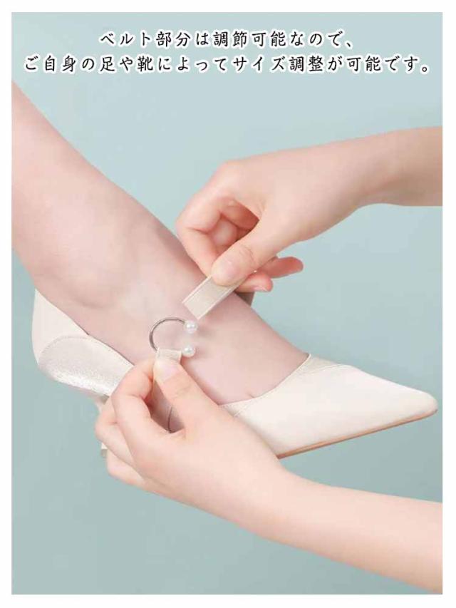 シューズストラップ シューズベルト 靴バンド 滑り止め 脱げ防止 シューズストラップ パンプスストラップ パンプスベルト サンダル レディース シューズバンド パール飾り サイズ調整可能 送料無料