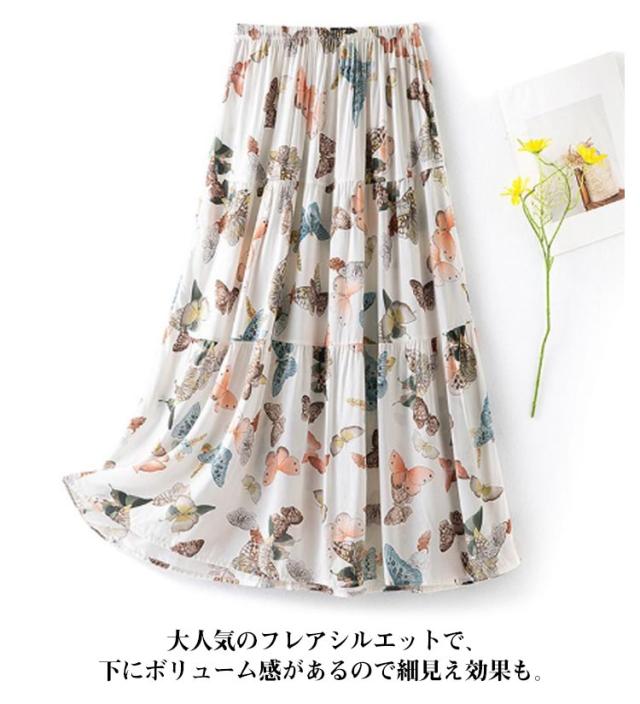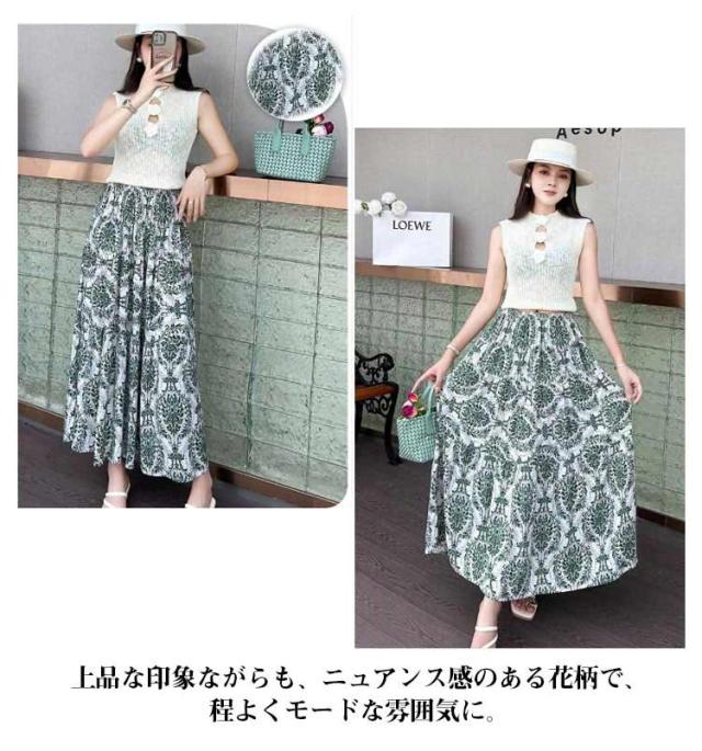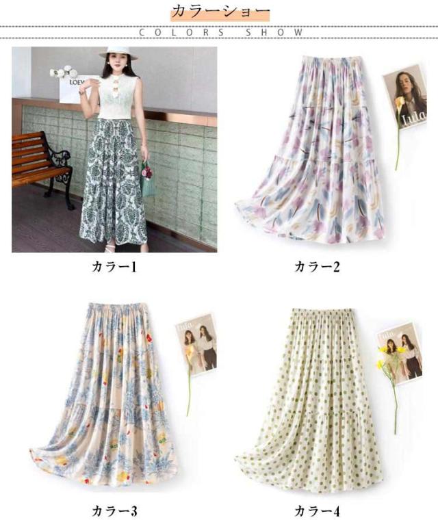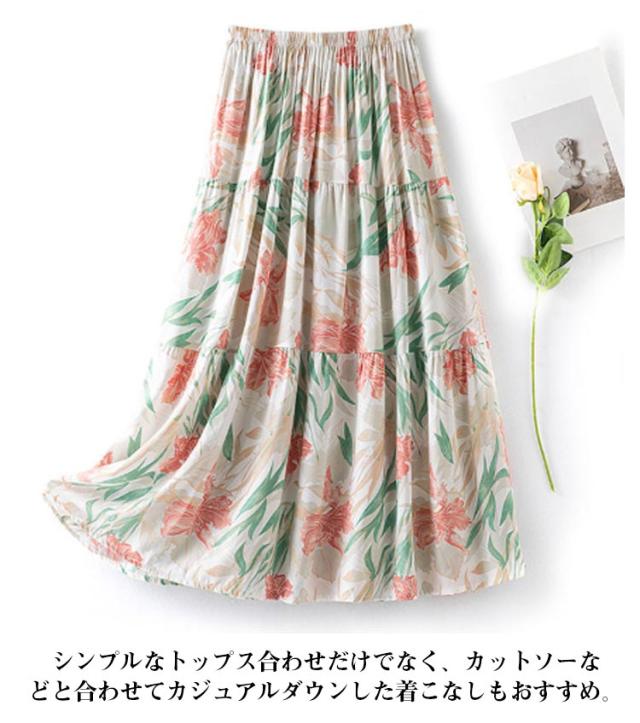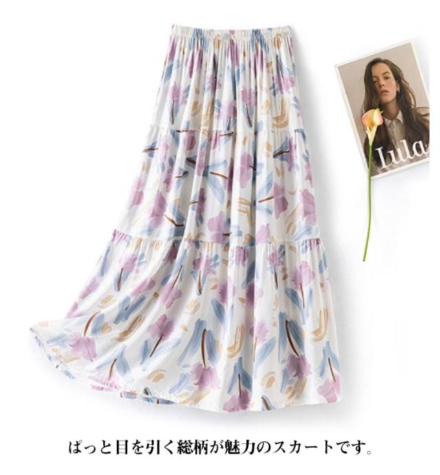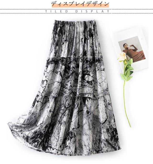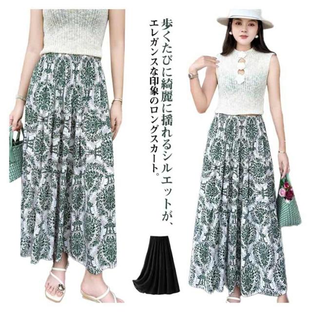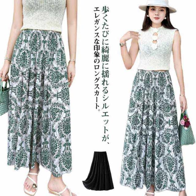 花柄 浮かび上がる スカート ボトムス スカート ゴム ロングスカート ドット柄 ペイズリー柄 フレアスカート フレア ふわっと ロング ギャザースカート ドレープ 柄 リーフ柄 Aラインスカート フレアマキシスカート 春