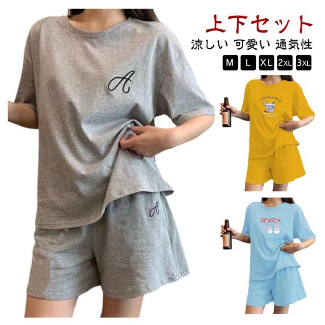 半袖 パジャマ ランニングウェア レディース セットアップ 寝巻き 部屋着 通気性 ルームウェア 外出 冷感 かわいい 可愛い Tシャツ 婦人用 家着 スポーツウェア 上下セット M 涼しい 可愛い ショートパンツ 柔らかい 部屋着 半ズボン L XL 2XL 3XL
