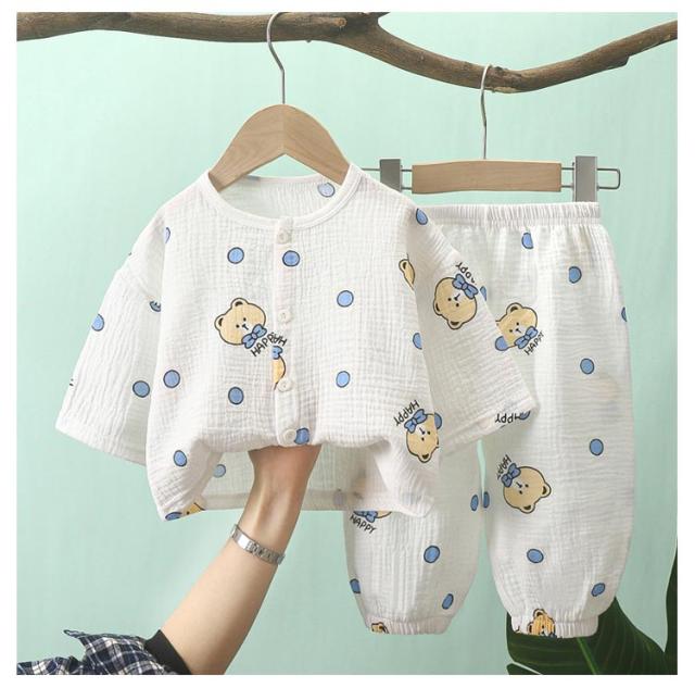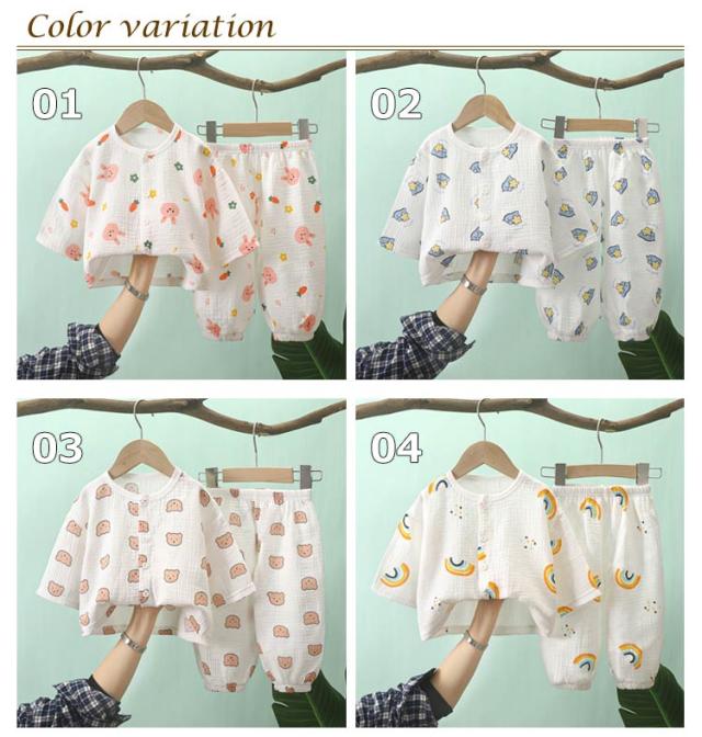 子ども ガーゼパジャマ ベビー 2重ガーゼ ベビー 男の子 長袖 上下セット 長ズボン ゆったり コットン 通気性 キッズ 子供パジャマ 子供パジャマ 女の子 部屋着 前開き ロングパンツ 吸水速乾 子供服 総柄 かわいい 春 夏 秋 送料無料