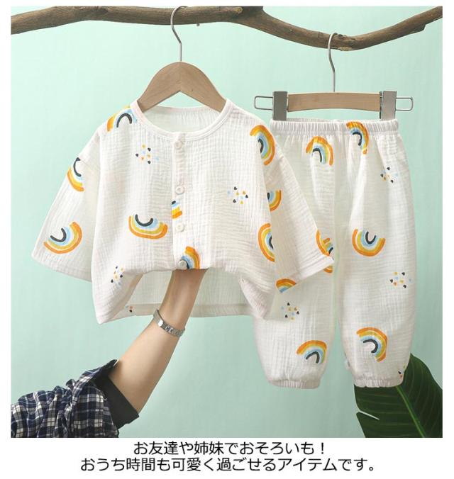 | おうち服もおしゃれに♪ガーゼ素材の子供ルームウェア。80-150cm! ダブルガーゼでつくられており柔らかくふんわりとした風合いがとても着やすく、心地良い睡眠を提供します。 トップスはボタンを外せばお子様一人でも着脱が簡単に。 リラックスしてお家時間を過ごせるよう、締付けの少ないシルエットに。 パンツは総ゴム仕様でお着替えも楽ちんです。 通気性・吸汗性に優れて、汗をたくさんかく夏でもサラサラ。 お友達や姉妹でおそろいも!おうち時間も可愛く過ごせるアイテムです。 | |