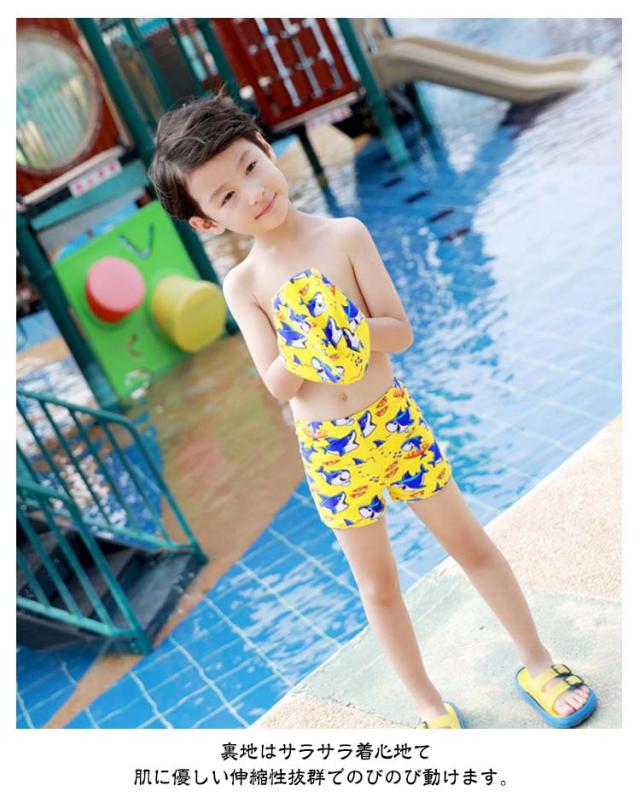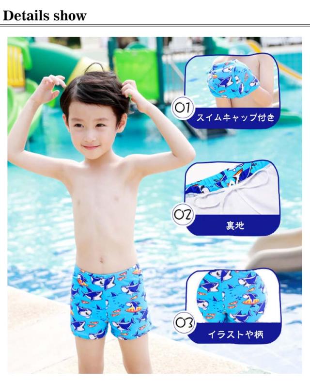 | 流行に左右されない可愛いデザインの男の子水着 イラストや柄デザインを鮮明にプリントしました! 裏地はサラサラ着心地て肌に優しい伸縮性抜群でのびのび動けます。 海やプールレジャー?スイミングスクールや幼稚園?保育園の水遊びに大活躍します。 スイムキャップとセットになります。 | |