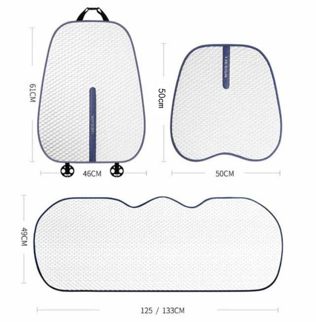 | サイズについての説明 | 運転席/助手席座面部:50x50cm 背面部:46x61cm 後部座席座面部:49x125cm セットA(3枚セット):運転席座面+助手席座面+後部座席座面 セットB(4枚セット):運転席座面+助手席座面+運転席背面+助手席背面 |