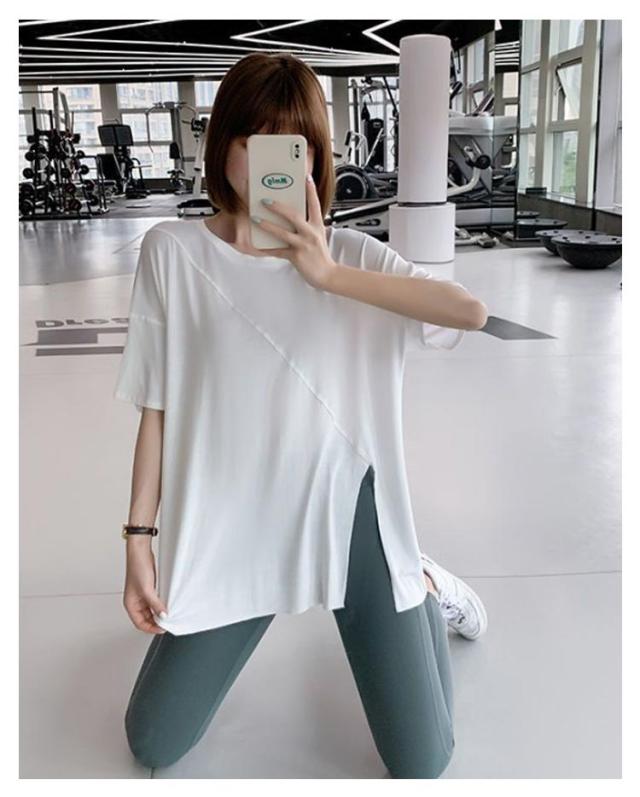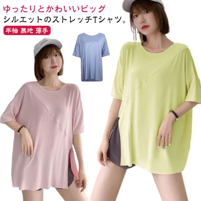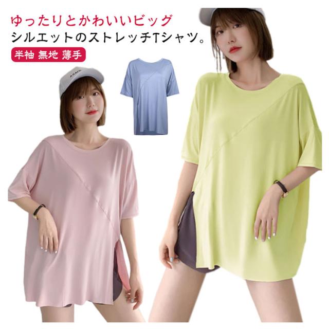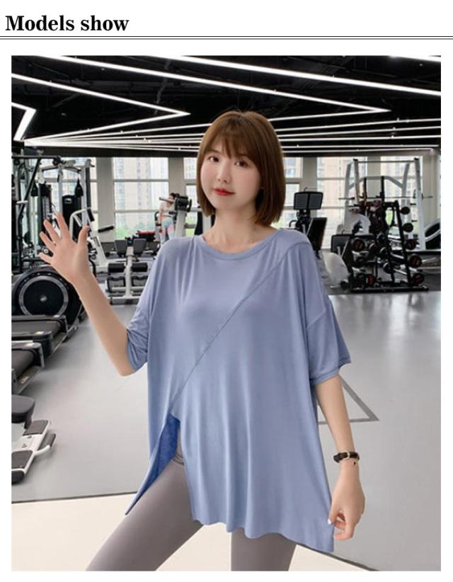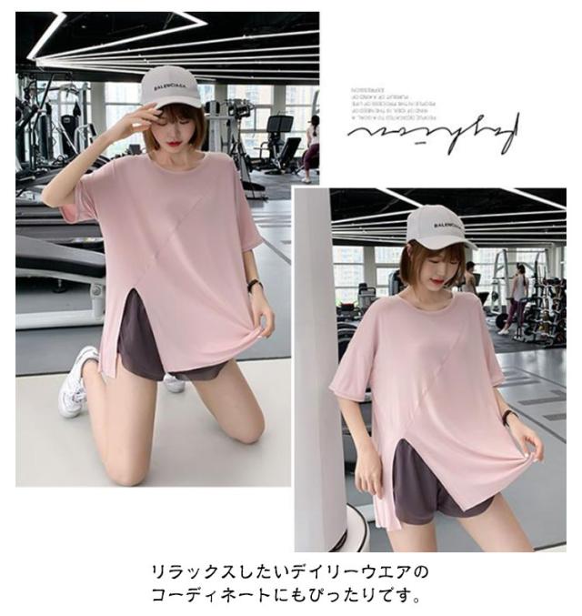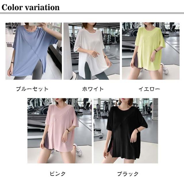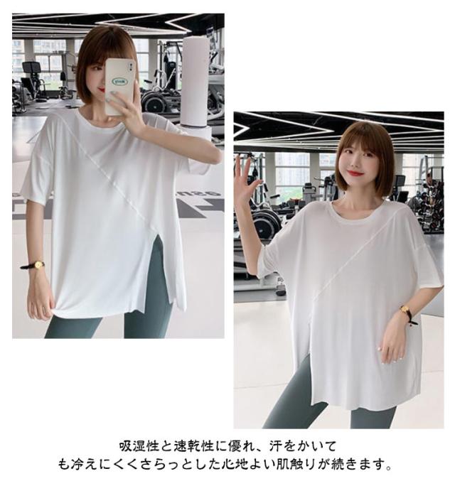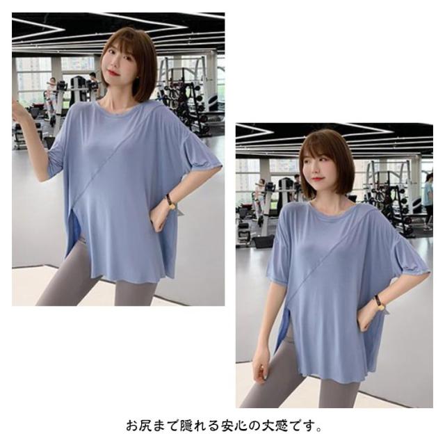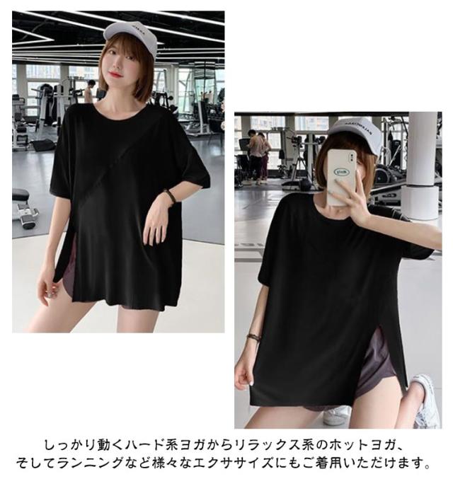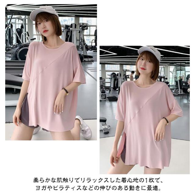 ヨガウェア レディース スポーツウェア ジムウェア トップス スポーツウェア ストレッチ Tシャツ トレーニングウェア ゆったり Tシャツ ピラティス ロング丈 かわいい ゆったり 薄手 フィットネスウェア ホットヨガ 長め 体型カバー ヨガ エクササイズ トップス