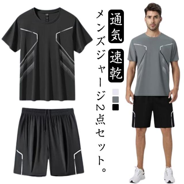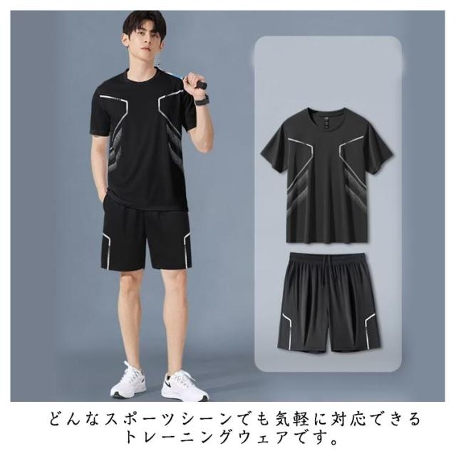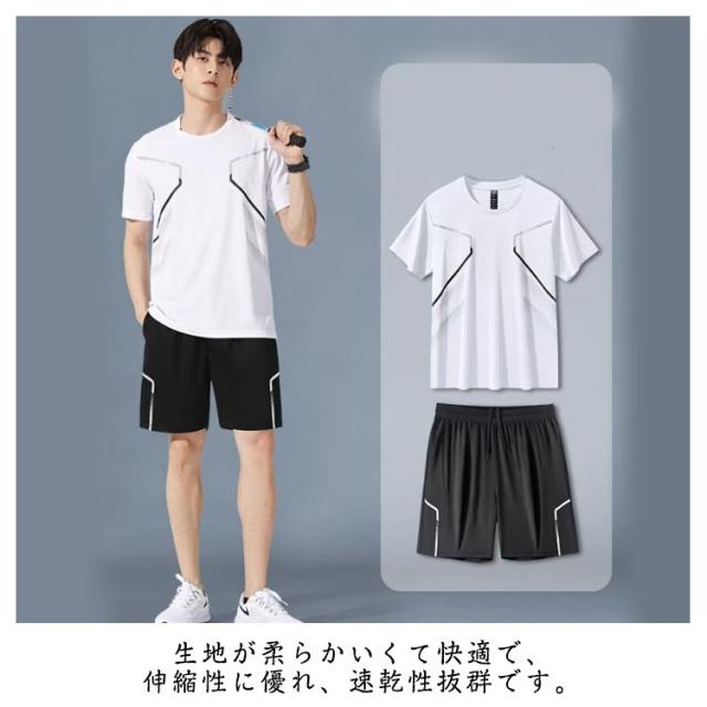 セットアップ ランニングウェア ショートパンツ セットアップ 夏服 夏 Tシャツ 半袖 上下 ジャージ メンズ メンズ 薄手 スポーツウェア 通気 速乾 ランニングウェア