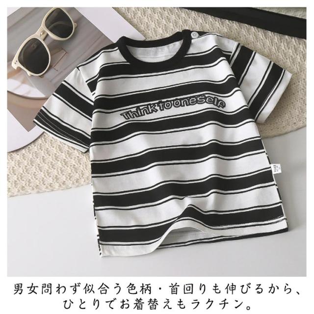 | 爽やかな薄手のTシャツです。 どんなアイテムとも合わせやすい。 男女問わず似合う色柄・首回りも伸びるから、ひとりでお着替えもラクチン。 | |