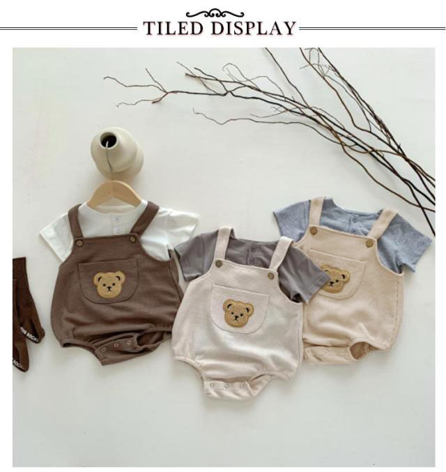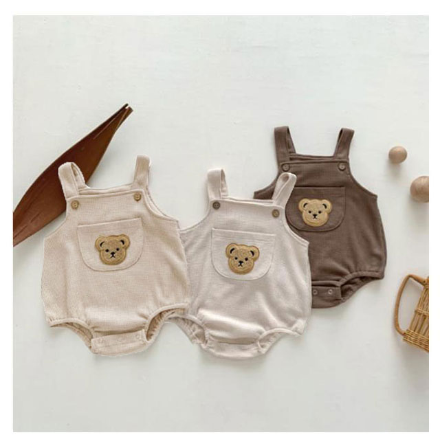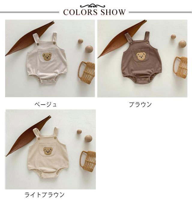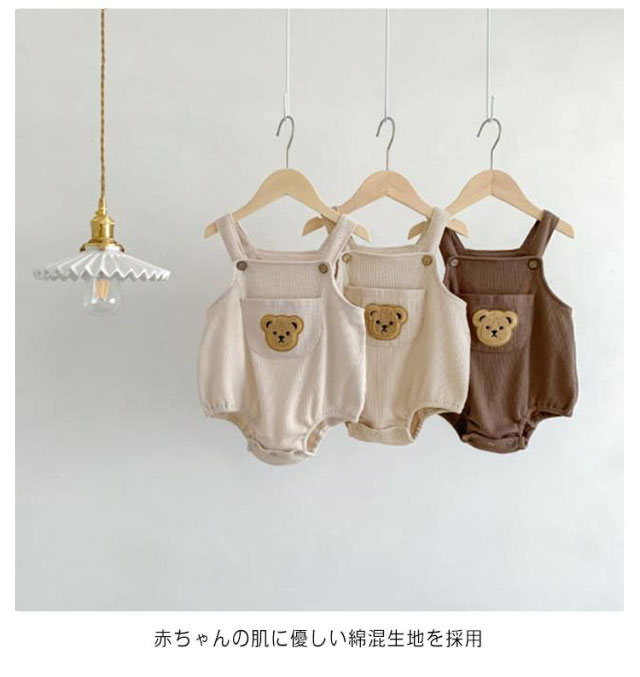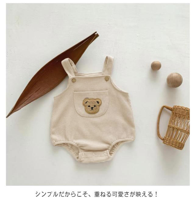 | ポッケト付き くま刺?サロペット シンプルだからこそ、重ねる可愛さが映える! 存在感バツグンのクマちゃんワッペンが 赤ちゃんの肌に優しい綿混生地を採用 | |