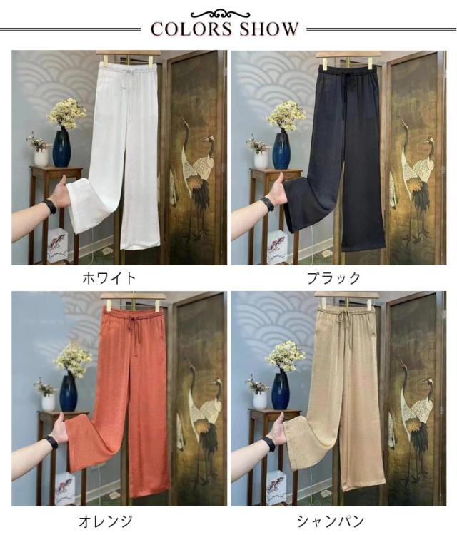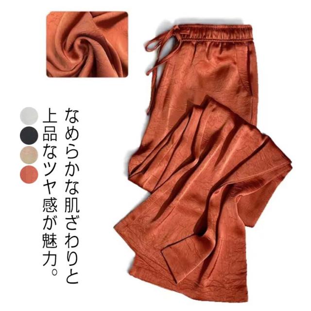 | ・なめらかな肌ざわりと上品なツヤ感が魅力。 ・ゆとりのあるワイドシルエットでラフに履いていただけます。 ・ウエスト総ゴム仕様で履き心地も楽チン。 ・無地だからお手持ちのアイテムとの合わせやすさも◎ | |