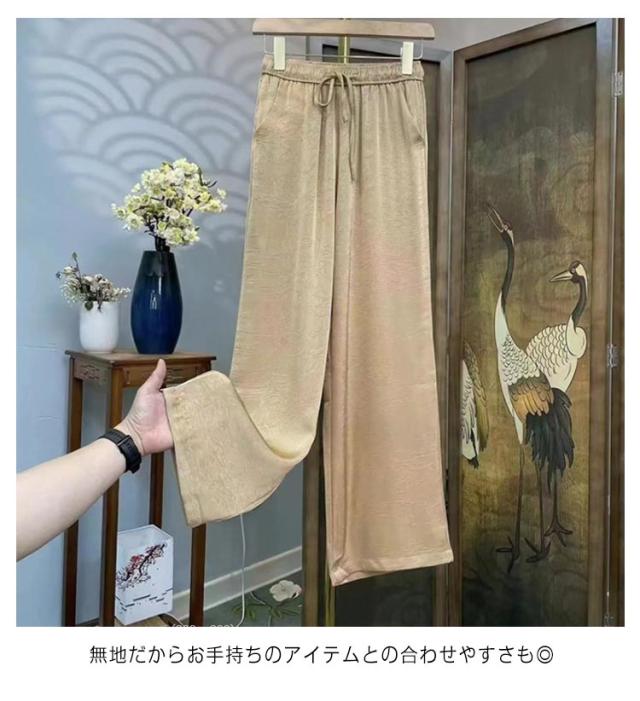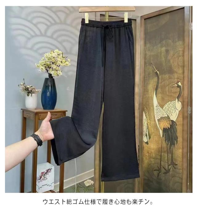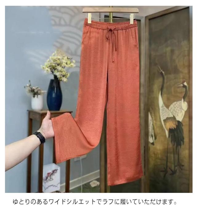 涼感 きれいめ シルク調 レディース ウエストゴム イージーパンツ 軽い 涼しい 接触冷感 シルクタッチ 接触冷感 ストレートパンツ ポケットあり カジュアル オフィスカジュアル 通勤 大人