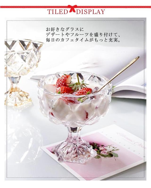 脚付き カップ 硝子 2個セット デザートカップ ガラス 280ml レトロ ボデガグラス カキ氷 浅型 アイス デザート ボデガカップ デザートグラス 食器 丈夫 コップ 耐熱 ガラス食器 ドリンクカップ デザート