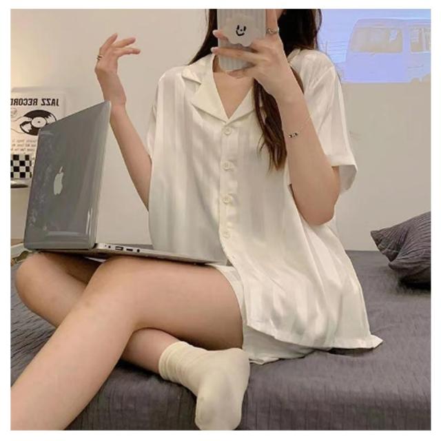 ルームウェア パジャマ 冷感 前開き 可愛い 春夏 レディース ゆったり 半袖 ルームウェア 部屋着 ショートパンツ 2点セット トップス デイリー 寝巻き 薄手 上下セット ウエストゴム フロントボタン 開襟 涼しい 可愛い 通気性