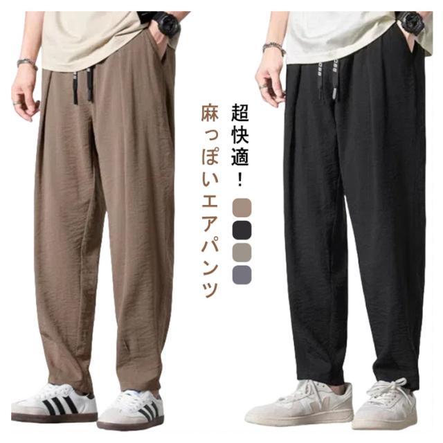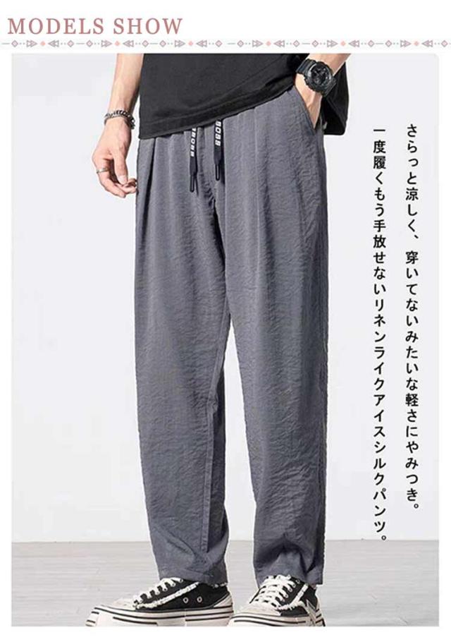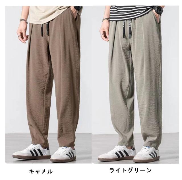 薄手 冷感パンツ 薄い 送料無料 夏パンツ メンズ テーパードパンツ サルエルパンツ ゴルフパンツ 送料無料 涼しい 調整紐 ウェストゴム アイスシルクパンツ リネンタッチ 綿麻風 バルーンパンツ