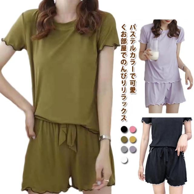 ゆったり 長袖 半袖 可愛い 夏 上下セット ルームウェア ルームウェア パジャマ レディース 春秋 半袖 短パン 冷感素材 ひんやり 薄手 ゆったり春夏 2点セット 部屋着 寝巻き カットソー ウエストゴム 旅行