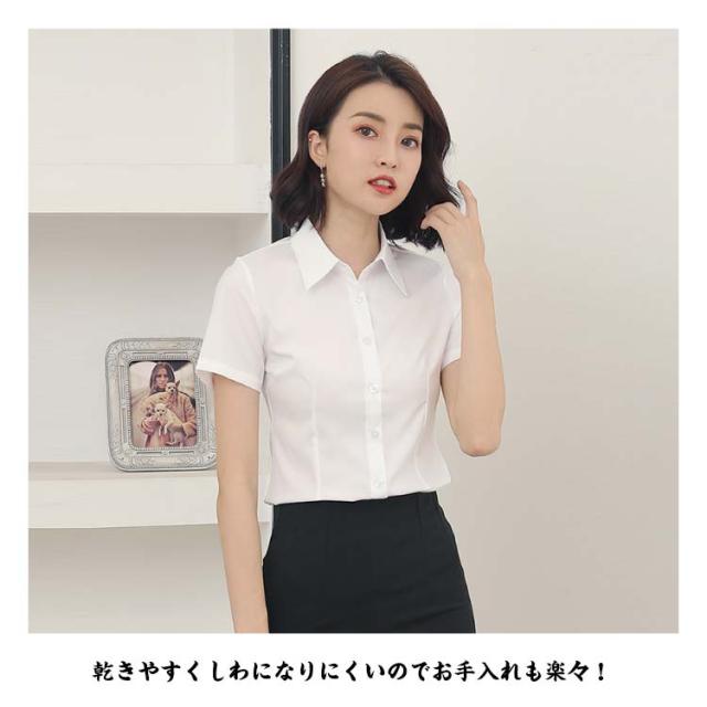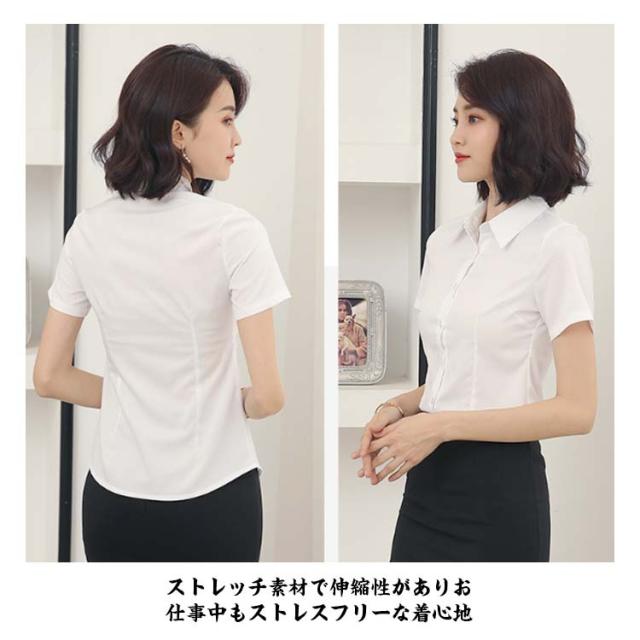 シャツ レディース 半袖/長袖 スーツ インナー オフィス ビジネス 事務服 シワになりにくい 形態安定 ノーアイロン ワイシャツ 白 黒 無地 Yシャツ フォーマル リクルート 就活 OL 入学式 制服 大きいサイズ 通勤 トップス ストレッチ