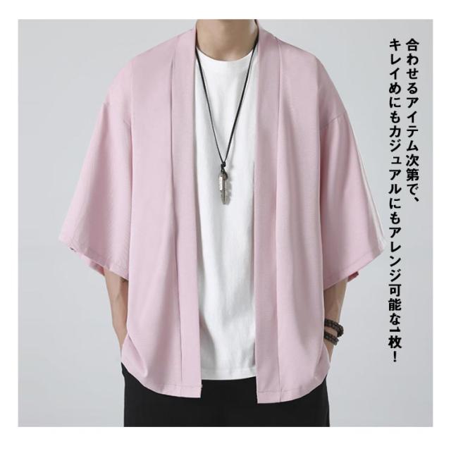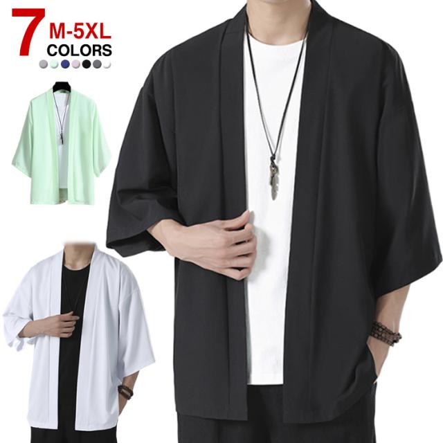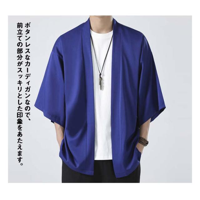 サマーカーディガン 接触冷感 メンズ カーディガン ルームウェア トップス 大きいサイズ ライトアウター 和服 無地 カジュアル 和風 和装 着物 和式 アウター 大人用 春夏 上着 半被 法被 甚平 部屋着 父の日 M-5XL 冷房対策