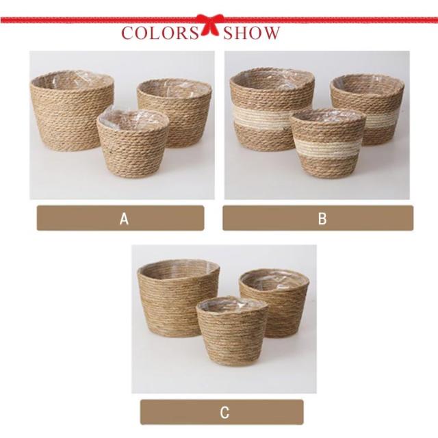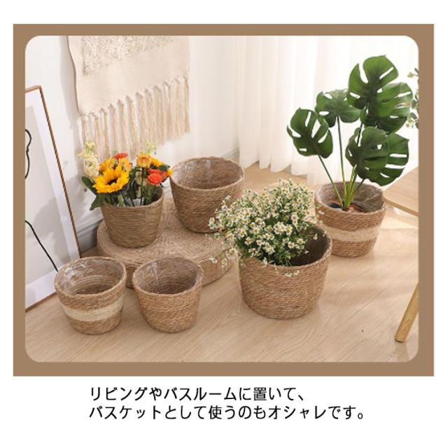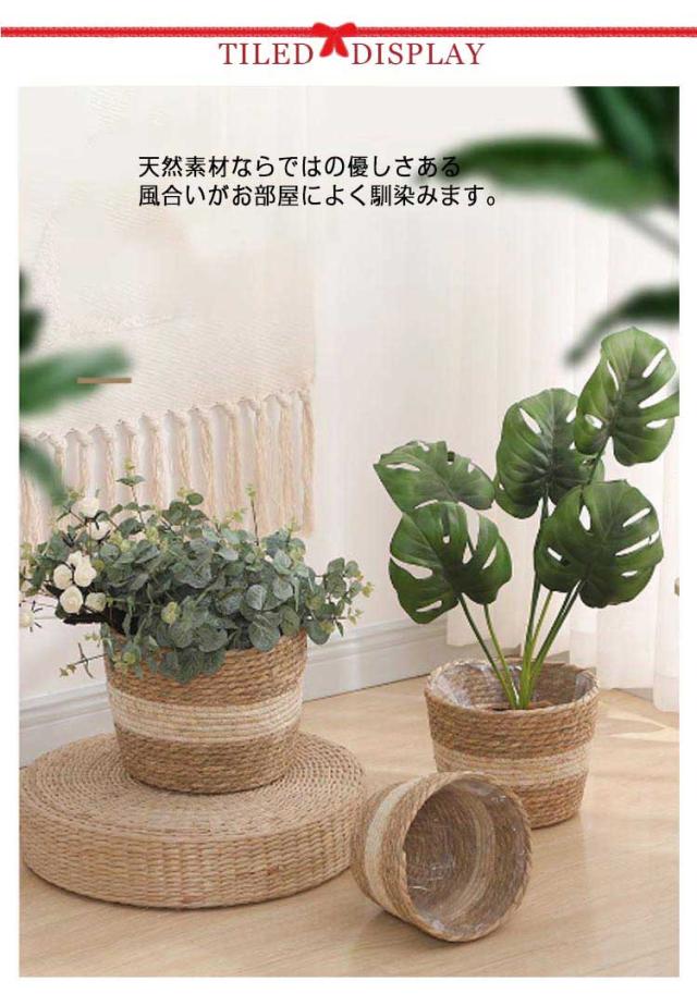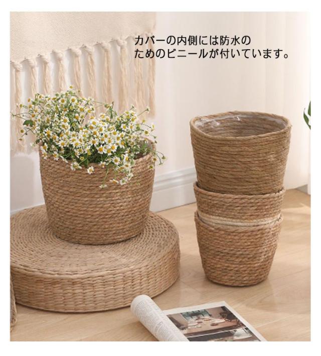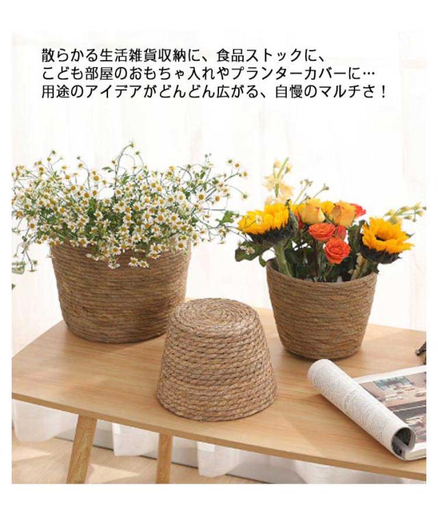 | 天然草でできたナチュラルテイストなプランターカバーです。 天然素材ならではの優しさある風合いがお部屋によく馴染みます。 カバーの内側には防水のためのビニールが付いています。 お手持ちの鉢植えを入れるだけで、簡単に模様替えを楽しめます。 リビングやバスルームに置いて、バスケットとして使うのもオシャレです。 S・M・Lサイズでスタッキングもできるので、使わない時は場所をとらず省スペース。 散らかる生活雑貨収納に、食品ストックに、こども部屋のおもちゃ入れやプランターカバーに…用途のアイデアがどんどん広がる、自慢のマルチさ! | |