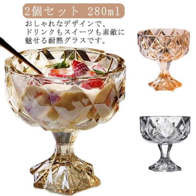 デザートグラス 280ml デザートカップ 2個セット ガラス レトロ 脚付き デザート カップ ボデガグラス カキ氷 アイス コップ ボデガカップ 浅型 食器 丈夫 硝子 耐熱 ガラス食器 ドリンクカップ デザート 雑貨