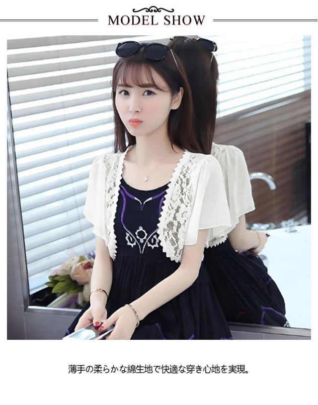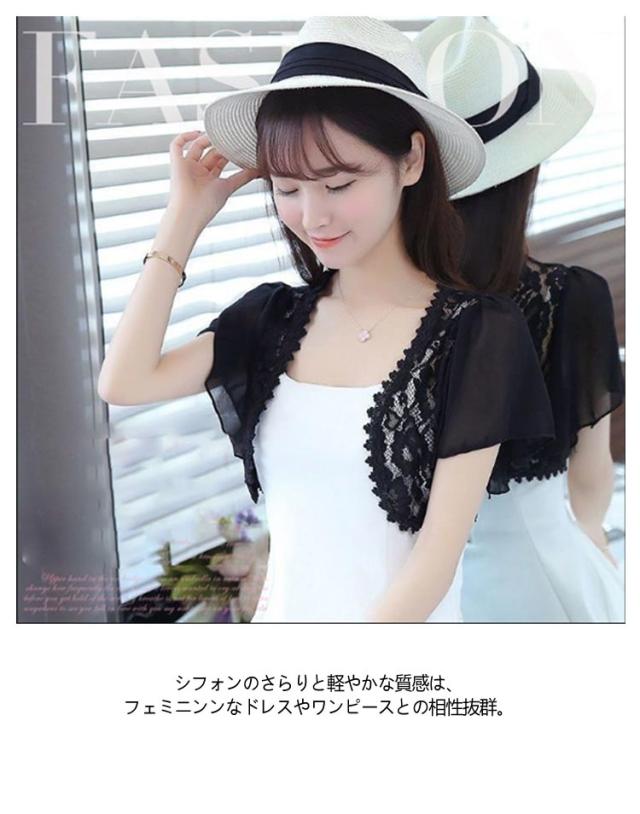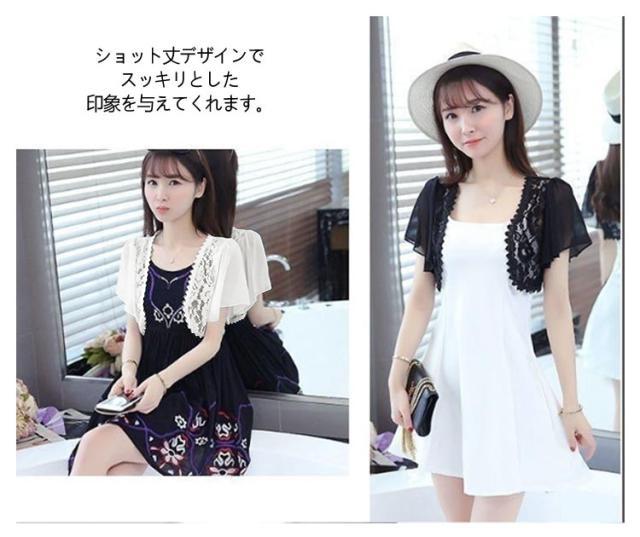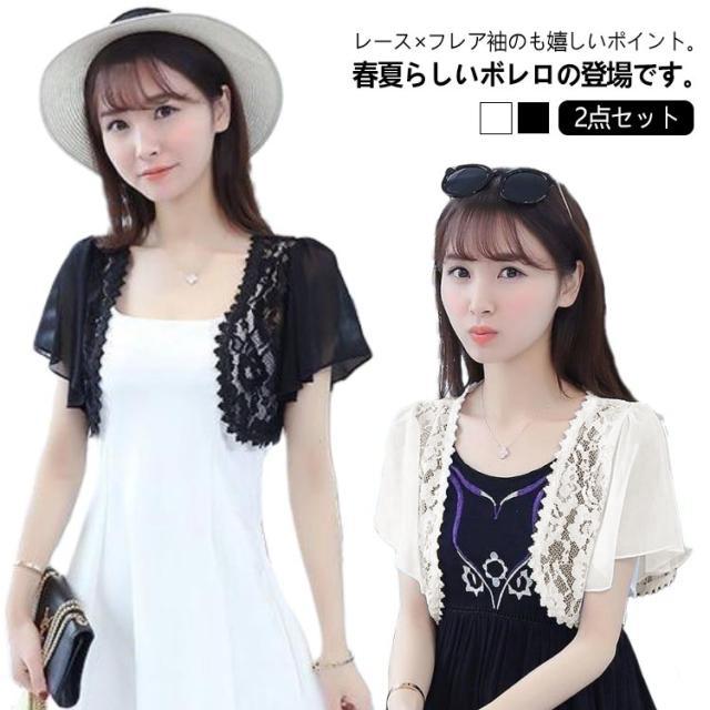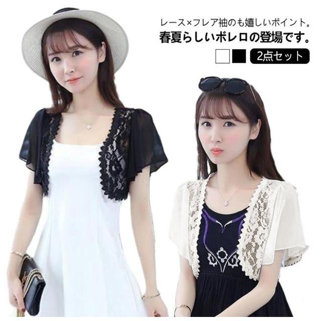 2点セット ボレロ 半袖 レディース サマーカーディガン レース ショート丈 アウター 羽織り 薄手 フレアスリーブ カーディガン ショール シンプル 春 夏 結婚式 二次会 ワンピース ドレス ブラック ホワイト S M L XL 2XL 3XL